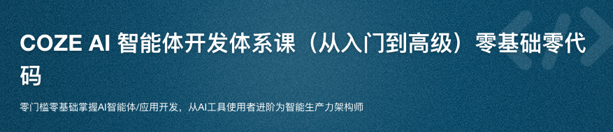 AI 智能体从入门到高级(COZE版)零基础/零代码视频教程。智能体已深度渗透各行各业,人才缺口巨大。无论你是AI初学者、运营者、大学生,还是职场人士,越早掌握智能体开发,越能抢占职业发展先机。针对无技术背景学员,课程系统梳理200+知识点、60+工具、140+实战案例、80+思路指导及150+思维链养成,由浅入深,零基础低门槛,助你轻松掌握低代码多模态智能体开发。让你领先一步,成长为AI智能体开发领域的行业精英!