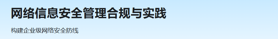 本课程深入解析网络安全法律法规,涵盖合规体系建设、风险评估及应急响应等关键环节。通过本课程,你将学习如何制定有效的合规策略,提升企业整体安全防护能力,确保信息安全管理符合国家标准要求,助力企业有效防范网络安全风险,切实保障数据安全。