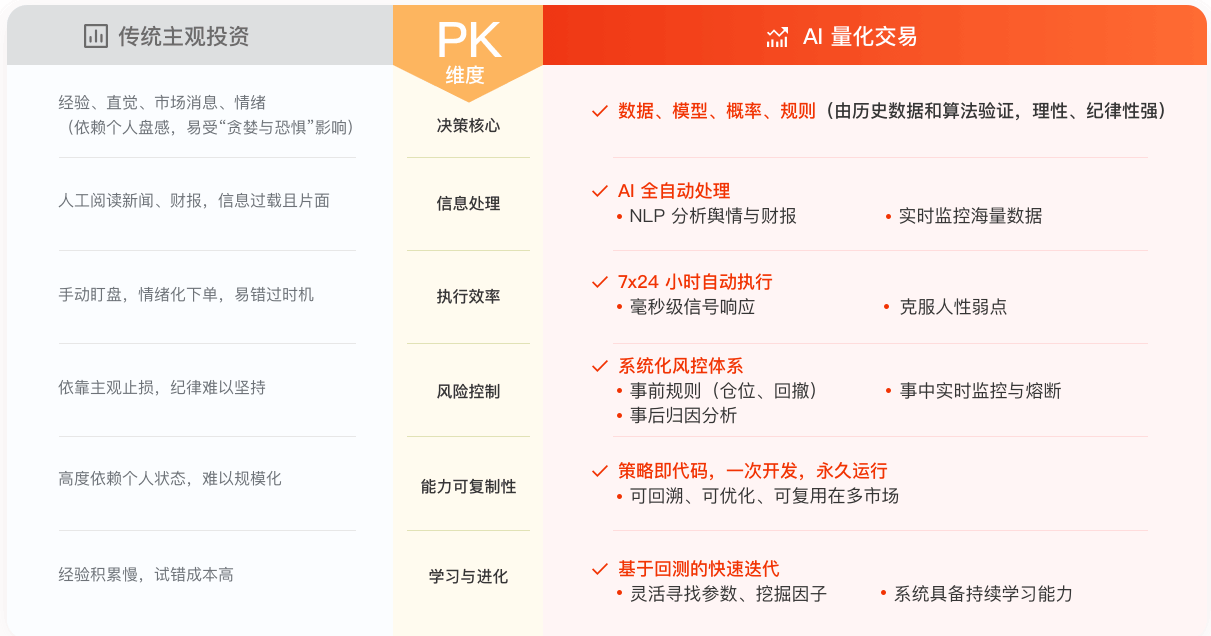 传统主观投资 vs AI 量化交易