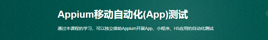 通过本课程的学习,可以独立借助Appium开展App、小程序、H5应用的自动化测试