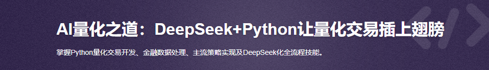 掌握Python量化交易开发、金融数据处理、主流策略实现及DeepSeek化全流程技能。