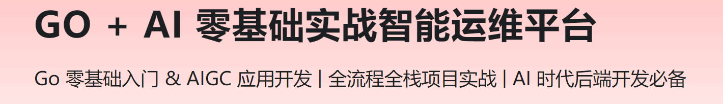 本课程手把手带你从零系统掌握 Go 语言精髓,涵盖核心特性、高并发编程、系统架构设计、Gin 框架、GORM 数据治理及 RBAC 鉴权组件开发。以智能运维平台真实项目为实战驱动,全流程提升你的 Go 编程能力及 AI 辅助项目提效技能。助力你轻松成长为AI时代最稀缺的 Go + AI 双料开发工程师!