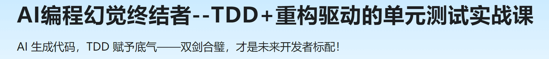 AI编程幻觉终结者—TDD+重构驱动的单元测试实战课视频教程。AI 生成代码很快,但幻觉带来的质量隐患仍不可忽视。TDD 是目前最低成本且最可靠的“锁定正确性”方法。本课把两者结合:写 Prompt → AI 出码 → 编写断言 → 秒级回归,最终把缺陷率压到极低,个人产能常见提升 3× 以上。你将带走一套可复制的“零回归”流水线,以及一项能写进简历、用于面试和谈薪的硬核能力——谁先掌握,谁就更有机会在未来三年技术招聘中占先。