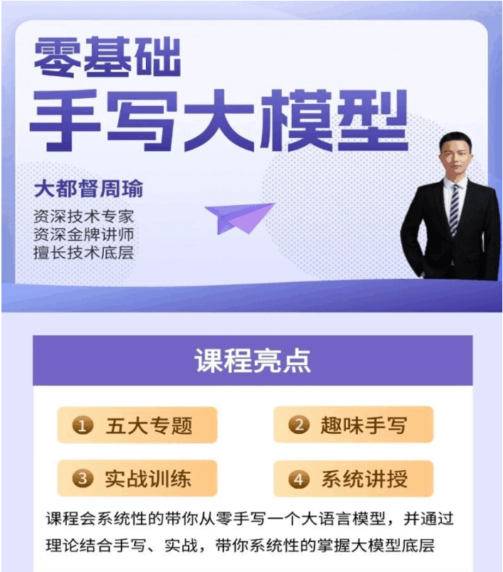 这是一个系统性的课程,会从最基础的知识开始,一步一步带你手写出来一个大语言模型
