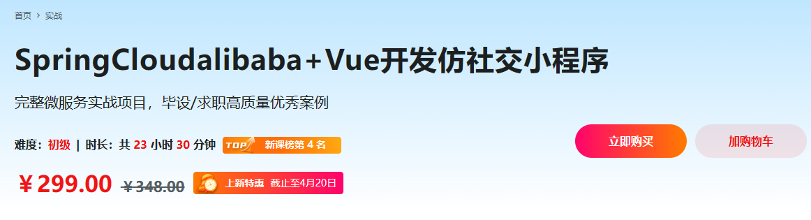 Spring Cloud + Vue 前后端分离 开发企业级在线视频课程系统(完结)