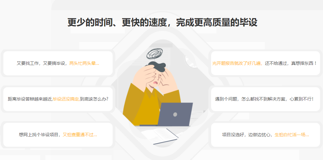 专为毕业生打造,助你高效、高质量完成毕设作品,解决毕业头等大事。课程全面梳理毕设流程,并精准定位每个环节的重点难点、完成技巧,扫清毕设难题。采用主流、企业级技术栈,祝你完成毕设,直面校招。