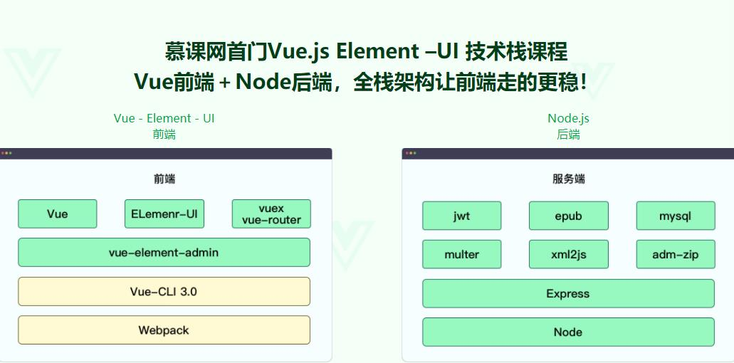 综合应用 Vue 和 Node 技术,基于 Element-UI 组件库搭建“小慕读书“的管理后台,通过 Node 实现了电子书上传和解析功能以及权限管理,不仅会教大家如何实现功能,更会讲解技术背后的原理,帮助大家做到举一反三。