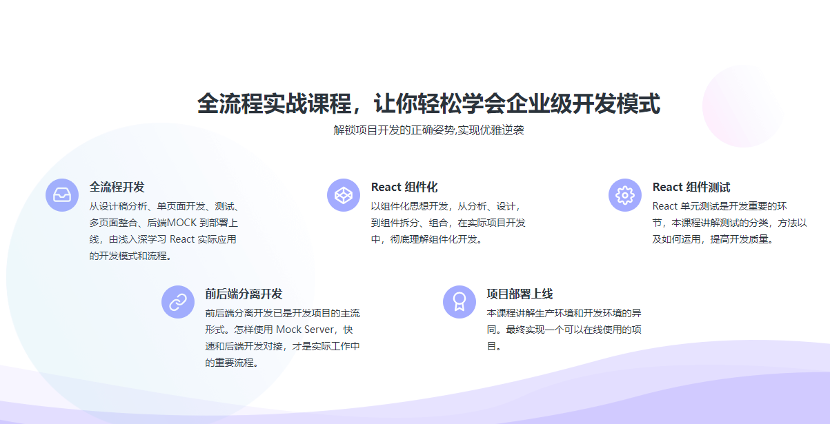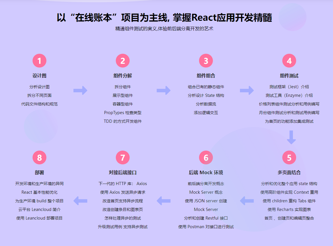 简介了测试的基本概念,介绍 通用测试工具 Jest 和 React 测试框架 enzyme,然后使用这两种工具完成首页所有展示型组件的测试和首页的集成测试。