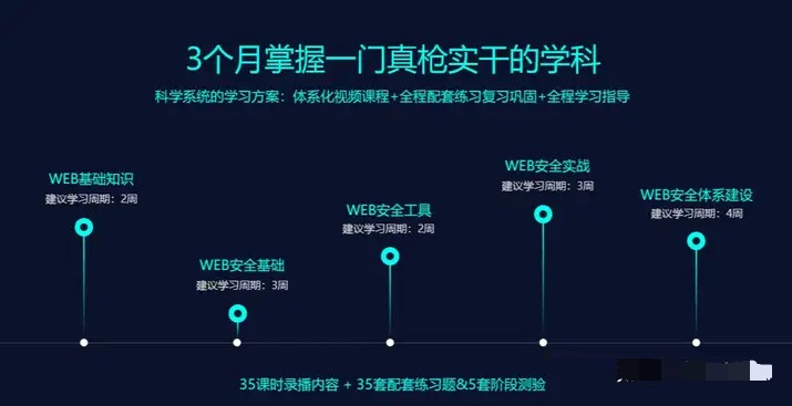 Web安全工程师是出自于网易云课堂微专业模块的视频课程,课程包含35个课时,聚焦Web安全工程师岗位招聘需求,由网易7位安全工程师大牛精心打造,助力学员规划Web安全学习路线,用3个月的学习周期,依次讲解Web基础知识、Web安全基础、Web安全工具、Web安全实战、Web安全体系建设,小编可以给大家分享视频课程。