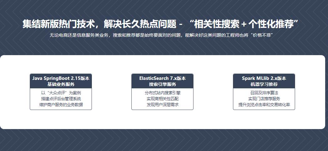 本章综合讲述了点评搜索推荐课程的项目业务背景,架构设计理念以及所需要用到的核心技术能力。