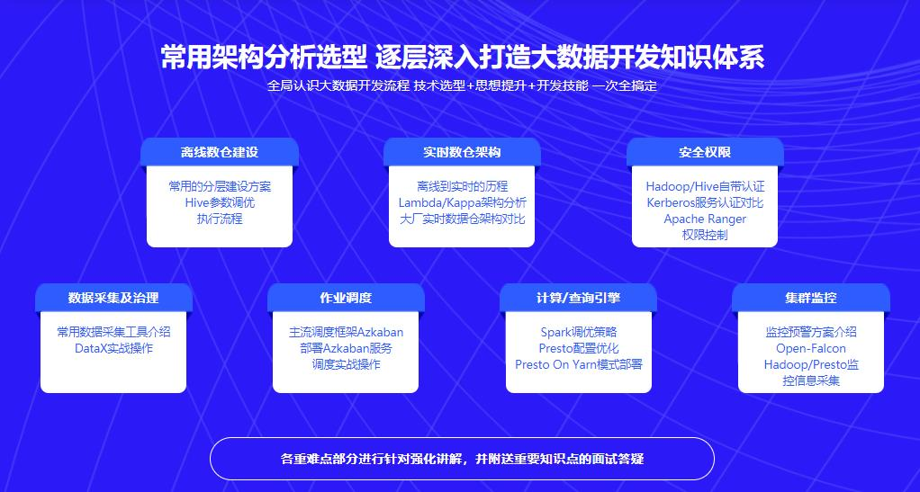 针对每个模块,提供成熟的选型视角与详细讲解,一次学习掌握大数据项目开发通用技术