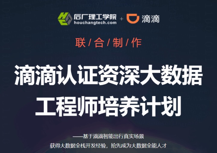 后厂理工学院工程院集结顶级师资力量,基于滴滴出行真实场景, 将滴滴出行的开放数据和部分深度大数据技术整合为了这门市场上深度极高的大数据课程。