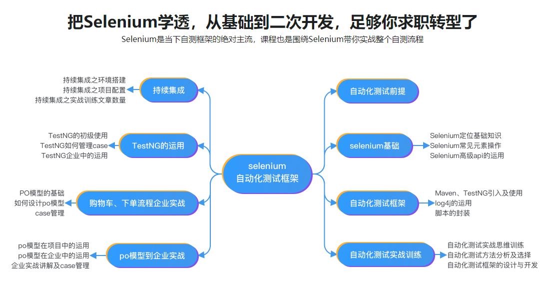 本章主要讲解测试的现状及课程目标,功能测试和自动化测试的区别,自动化测试流程有哪些,自动化用例和功能用例的区别,自动化测试用例的编写,selenium的优势及工作原理。