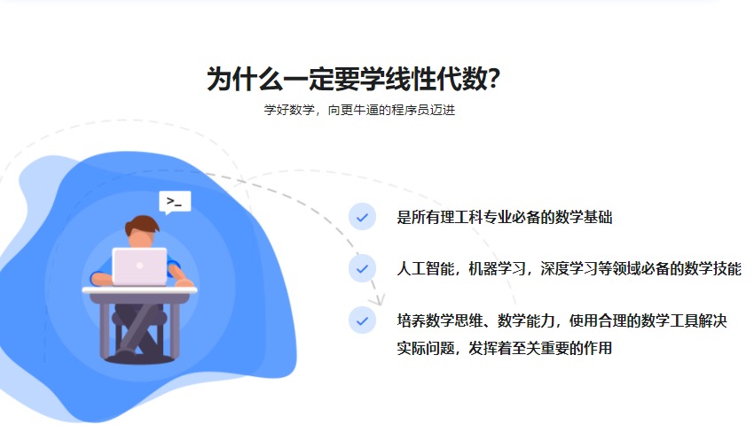 欢迎咱们来到《专给程序员规划的线性代数》,在这个课程中,咱们将运用编程的方式,学习线性代数,这个近现代数学发展中最为重要的分支。学懂线性代数,是同学们深化学习人工智能,机器学习,深度学习,图形学,图画学,密码学,等等许多范畴的根底。从这个课程开端,让咱们真正学懂线性代数!…