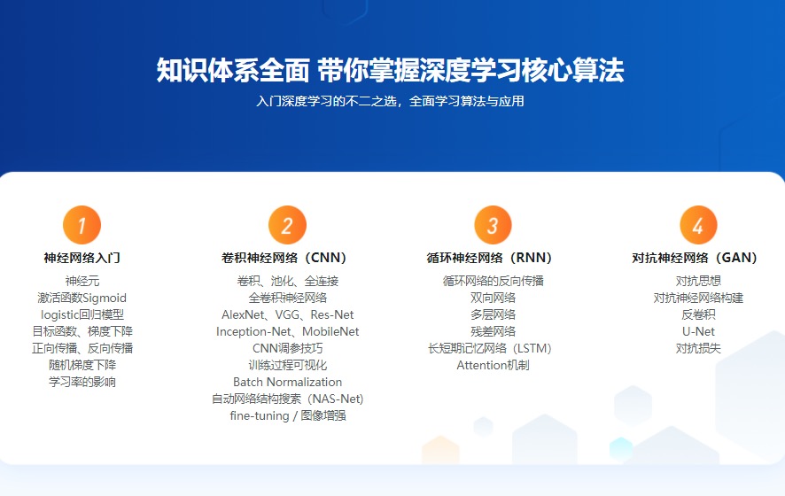 深度学习的导学课程,首要介绍了深度学习的运用范畴、人才需求情况和首要算法。对课程章节、课程安排、适用人群、前提条件以及学习完成后到达的程度进行了介绍,让同学们对本课程有根本的知道。