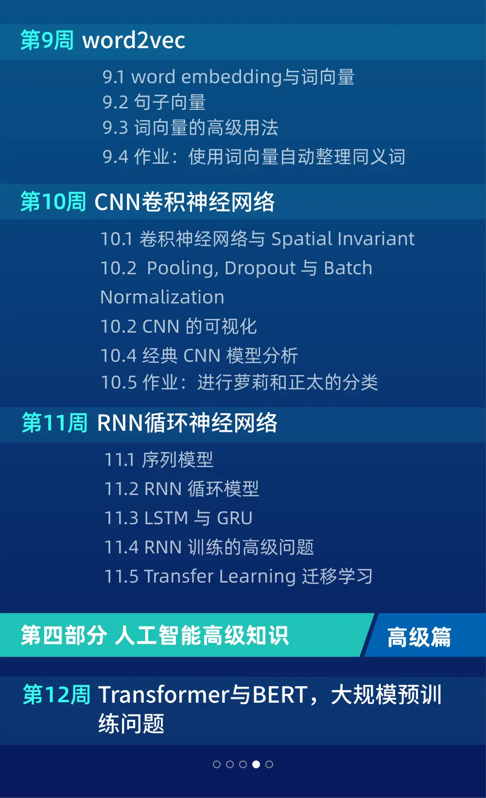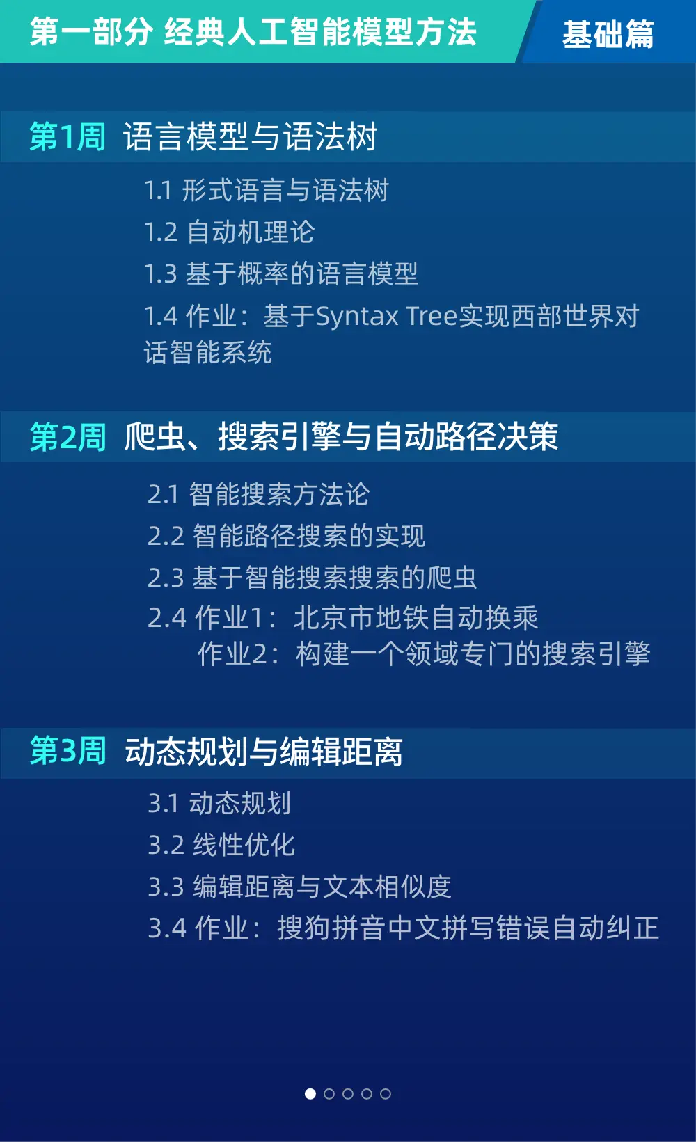 为了满足不同基础的学生需求,我们提供了预修课、专业选修课(分专业选修)、公选课、提升课。预修课和公选课帮助学员具备人工智能中的数学、英语、python编程、算法分析、数据分析的基础。
