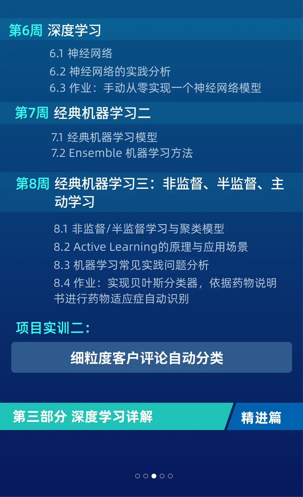 课程主要内容涉及计算机编程思维的养成,数据分析、数据科学的深度理解和实践;机器学习(ML)、深度学习(DL)的深度理解和实践;计算机视觉(CV)、自然语言处理(NLP)、推荐系统(RS),数据挖掘(DM)、数据科学(DS)等方向,培养同学们解决典型问题的能力。