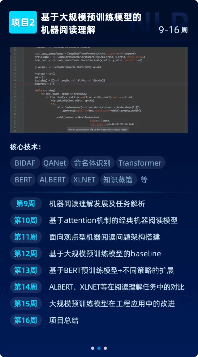 精选3大企业实训项目,都是最前沿的项目,其中不乏产业界没有解决的课题,有很大的优化空间。资深工程师团队专门研究项目,挖掘最优的解决方案。每个项目需要8周时间完成并且落地,培养学员解决问题的能力和创新能力。