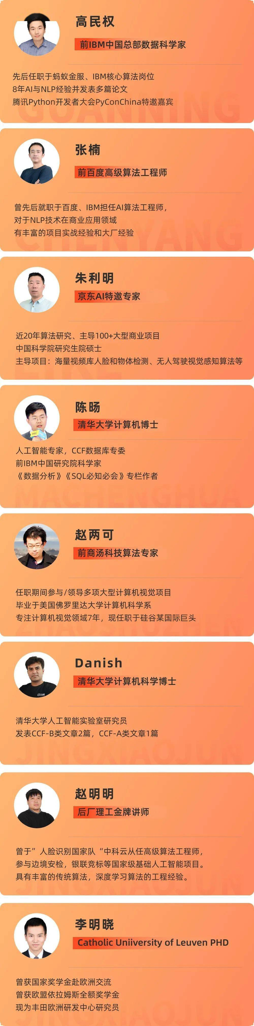 本课程的老师,均来自国际名校(清华大学、佛罗里达大学、浙江大学等)且均具备世界知名企业(阿里巴巴、商汤科技、IBM中国实验室等)的实际工作经验。我们相信,唯有真正的资深老师 + 良好的表达传授能力,才能给同学们真正的知识。