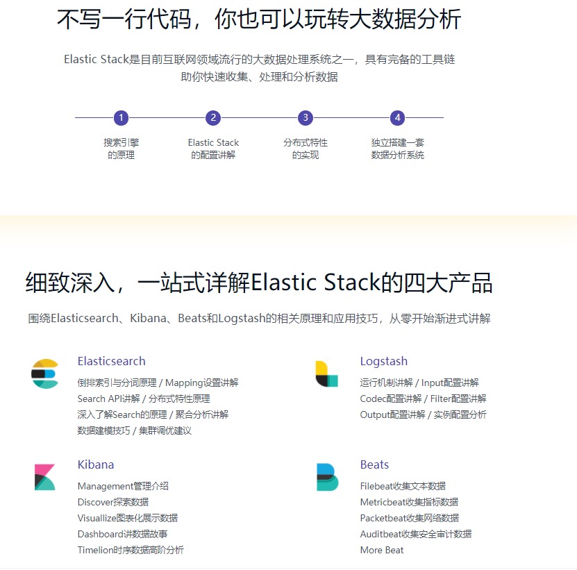 本课带你把握Elastic Stack的组成及原理应用,详解Elasticsearch、Kibana、Beats及Logstash 的原理与应用技巧,助你快速搜集、处理和剖析数据,以达到助力业务增长的目标!