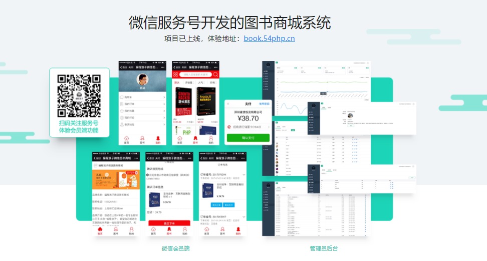 - 本章内容会给大家通览本门课程的整体架构、功能模块、技术选型及课程安排,让大家在一个清晰的开发思路下,进行后续的学习,同时领着大家登陆http://book.54php.cn(微信服务号可以打开这个网站直接扫码体验)一起来演示一下项目。本次课程是严格按照商业系统进行架构开发的,从PC管理员端到微信/H5会员端,从零开始,通俗易…