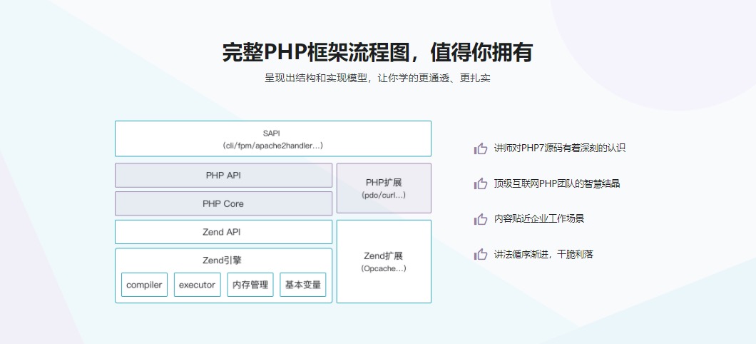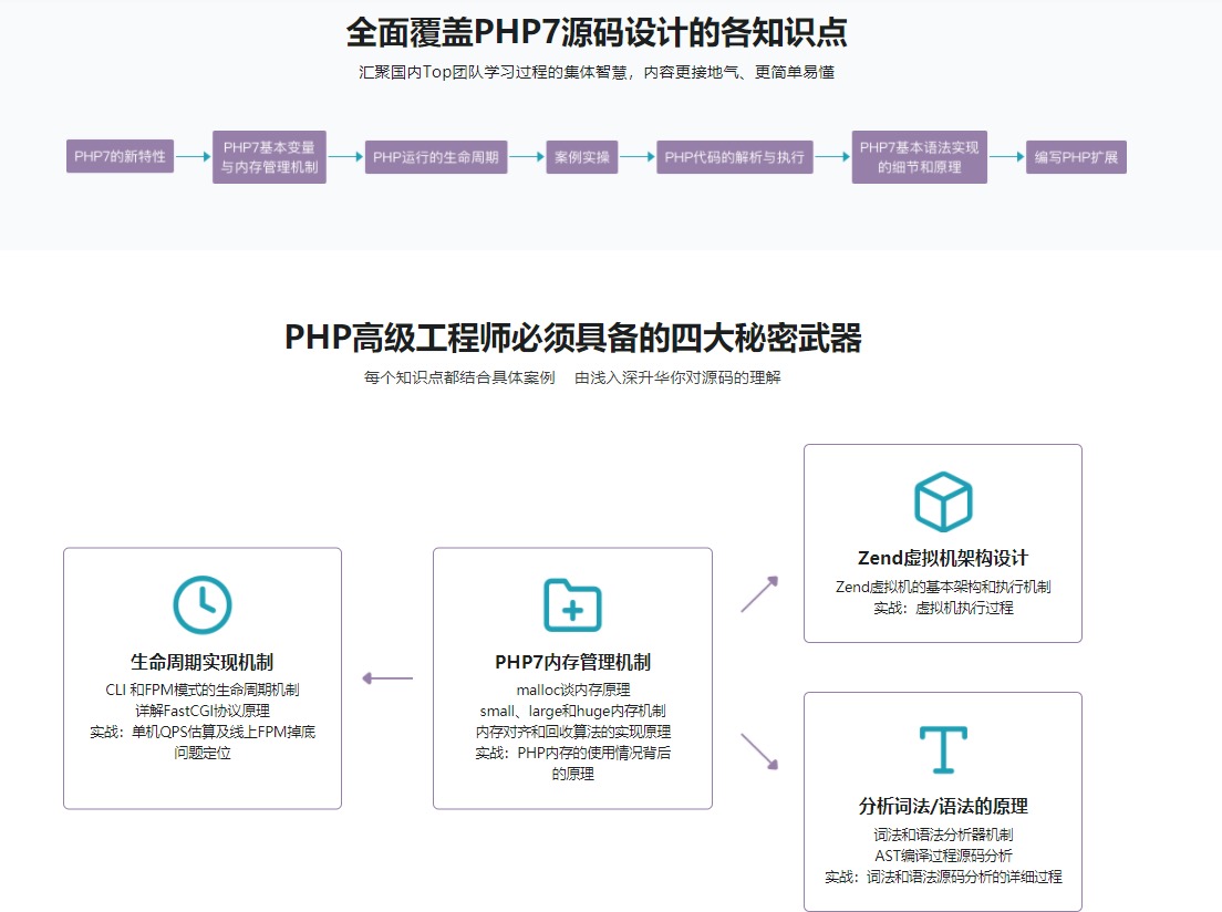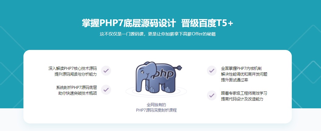 本课程将带你深入剖析PHP7源码,掌握PHP7源码背后的原理,内核机制、核心技术点、PHP扩展及架构设计思想等,提高你的源码阅读和分析能力,提升你的编程技能和代码设计能力,让你快速突破技术瓶颈,解决性能调优和高并发问题。