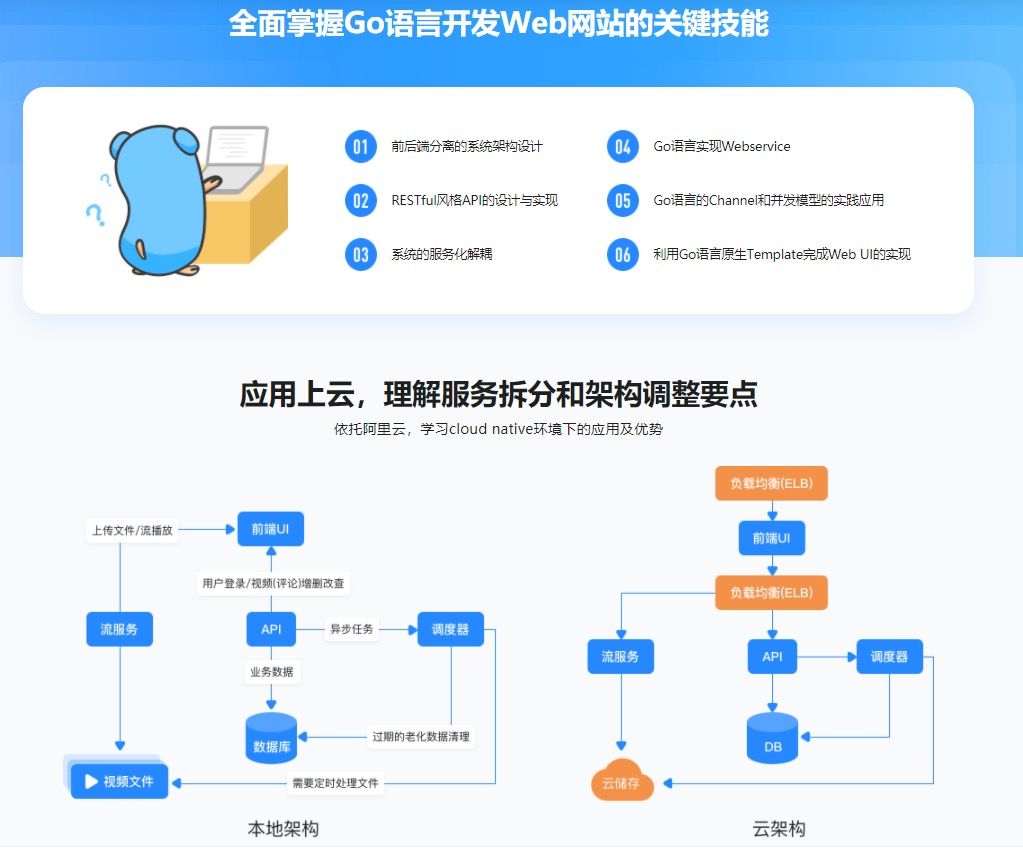 本课程使用Go实战一个流媒体视频网站,从后端Server到前端UI,全面学习Go的要害开发技术和架构风格。凭借SOA服务化解耦的规划理念讲解,帮大家理解真实web服务背后的内容。最后通过架构调整实现Cloud native(云原生)部署。