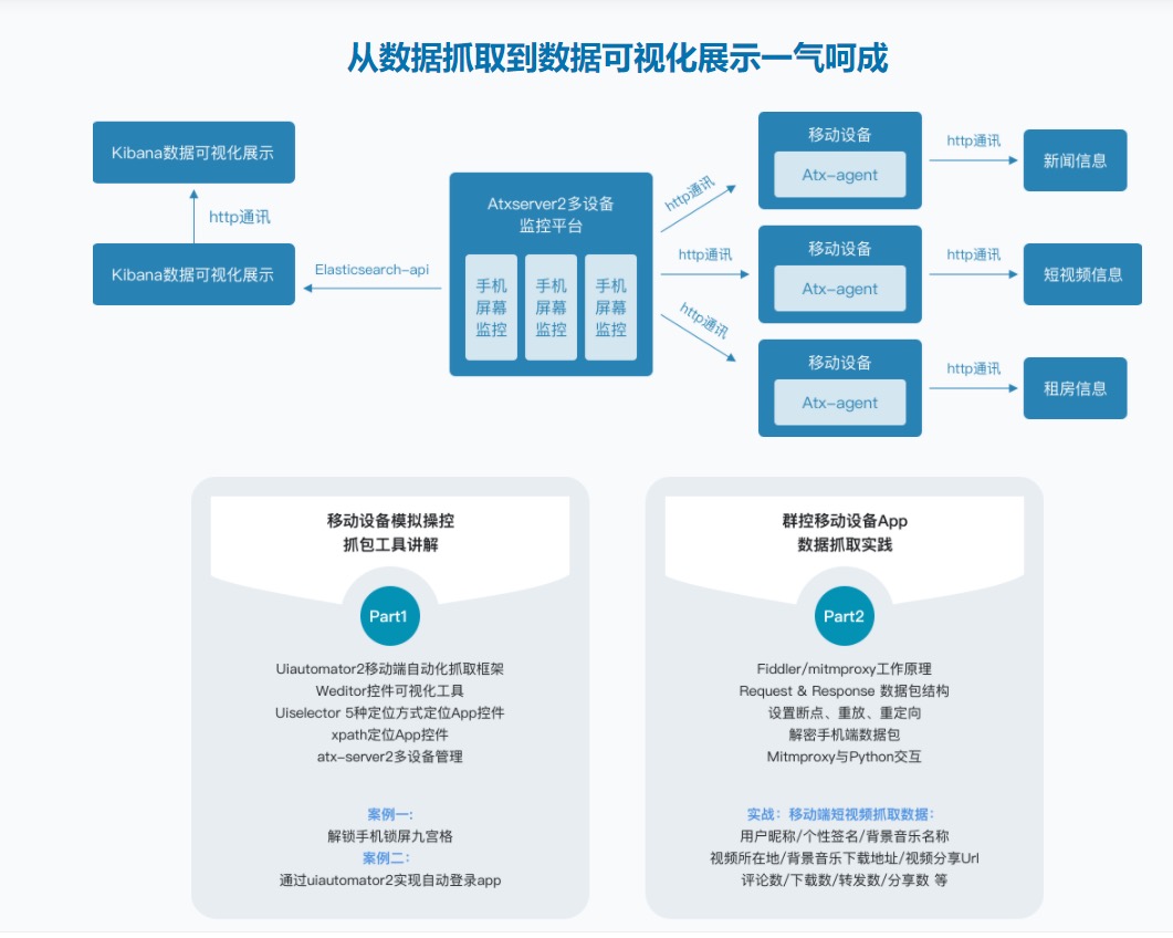介绍课程目标、通过课程能学习到的内容、学会这些技能能做什么,对公司业务有哪些帮助,对个人有哪些帮助。介绍目前app数据抓取有哪些困难,面临的挑战,本实战课程会利用哪些工具来解决这些问题,以及本实战课程的特点 ……