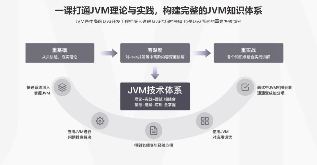 本课程从源码到运行、类加载,再到内存分配和垃圾回收,以及JVM调优的技巧与实战。整个课程基于JDK13讲解,理论-实战-面试三结合,带你剖析整个JVM知识体系,一站解决JVM问题。