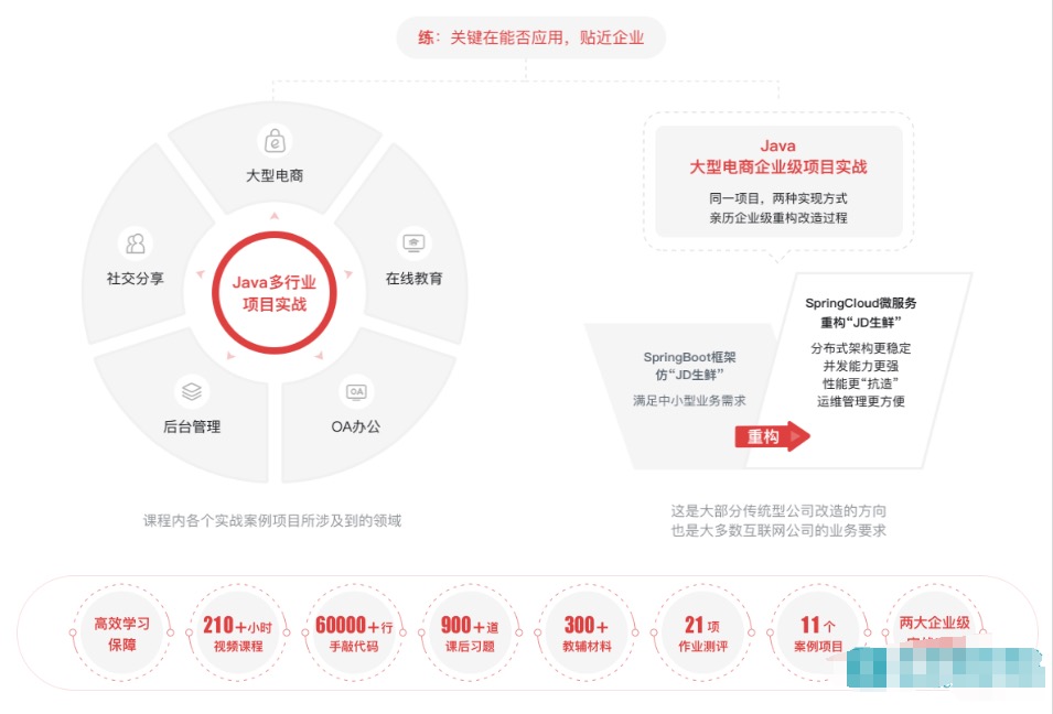本套课程来自某课网体系课,是一门零基础学习Java的视频教程。课程除了基础知识(如:Java语法基础、数据库开发、前端基础与Web入门、SSM框架整合开发、Spring Boot项目实战、分布式与微服务等)的讲解外,每个阶段还搭配了实战项目,通过循序渐进的方式对项目实战能力进行锻炼,最后精心安排的电商项目源自企业真实开发,带大家体验企业级开发流程。全部学完并掌握相当于1-2年Java开发经验,保证大家安心就业。