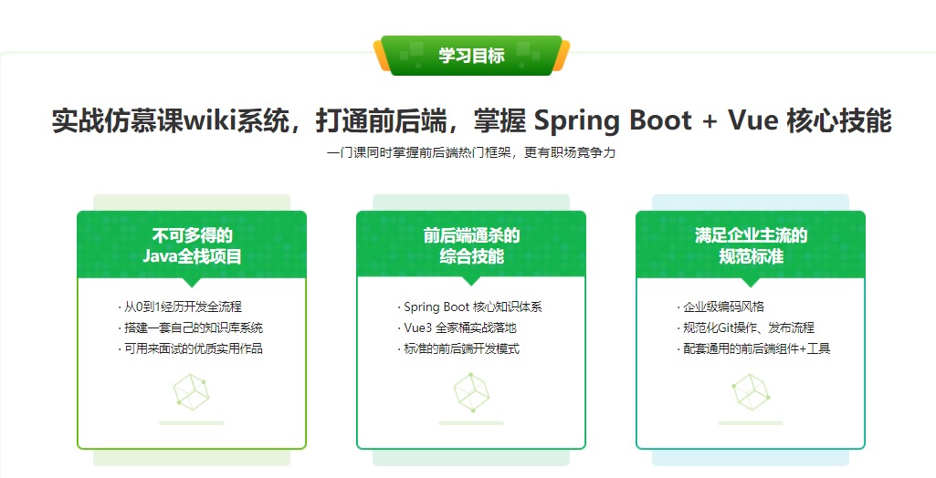 通过一个界面简约、功能完整的知识库项目,带你快速掌握Spring Boot核心知识+ Vue全家桶全栈技能。在此过程中,打造一套通用的组件工具(可应用于其他项目),掌握前后端分离开发模式,搭建一个专属自己的、内容可灵活配置的知识库系统。