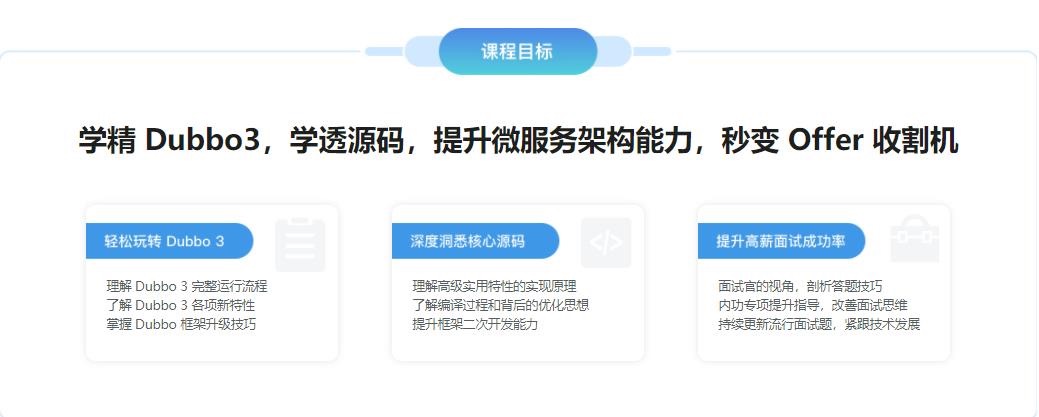 Apache Dubbo 3 从性能和云原生的角度提出了诸多特性,大大提升了开发效率。作为目前市面上稀缺的 “深度剖析” 精品课程,资深架构师将带领大家,探究 Dubbo 3 的底层实现原理,掌握源码分析技巧,助力大家学精学透 Dubbo 的同时,提升微服务架构能力,快速成为独当一面的顶级攻城狮!