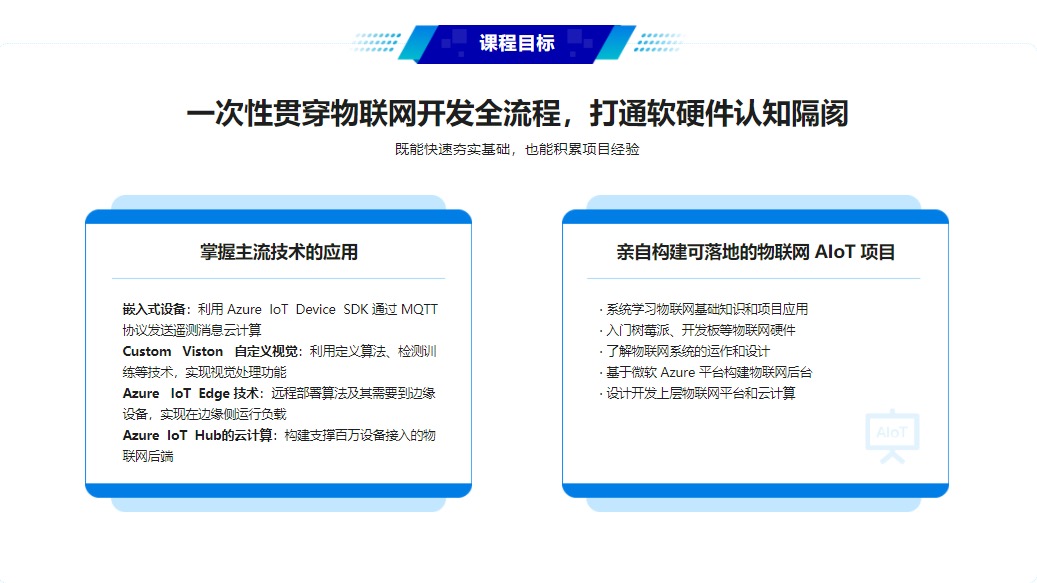 未来,物联网技术在各行业的使用将越来越广,对人才的需求也越发凸显。在java、python等技术进入红海的当下,物联网也成为了很多人寻找突破的方向。由于涉及软硬件结合及多种复杂技术,对传统工程师来说是极大的挑战。本课程创新性的整合当下热门物联网技术,贯穿多个经典案例,带你全面、系统的掌握完整物联网项目开发,轻松应对面试及工作需求。