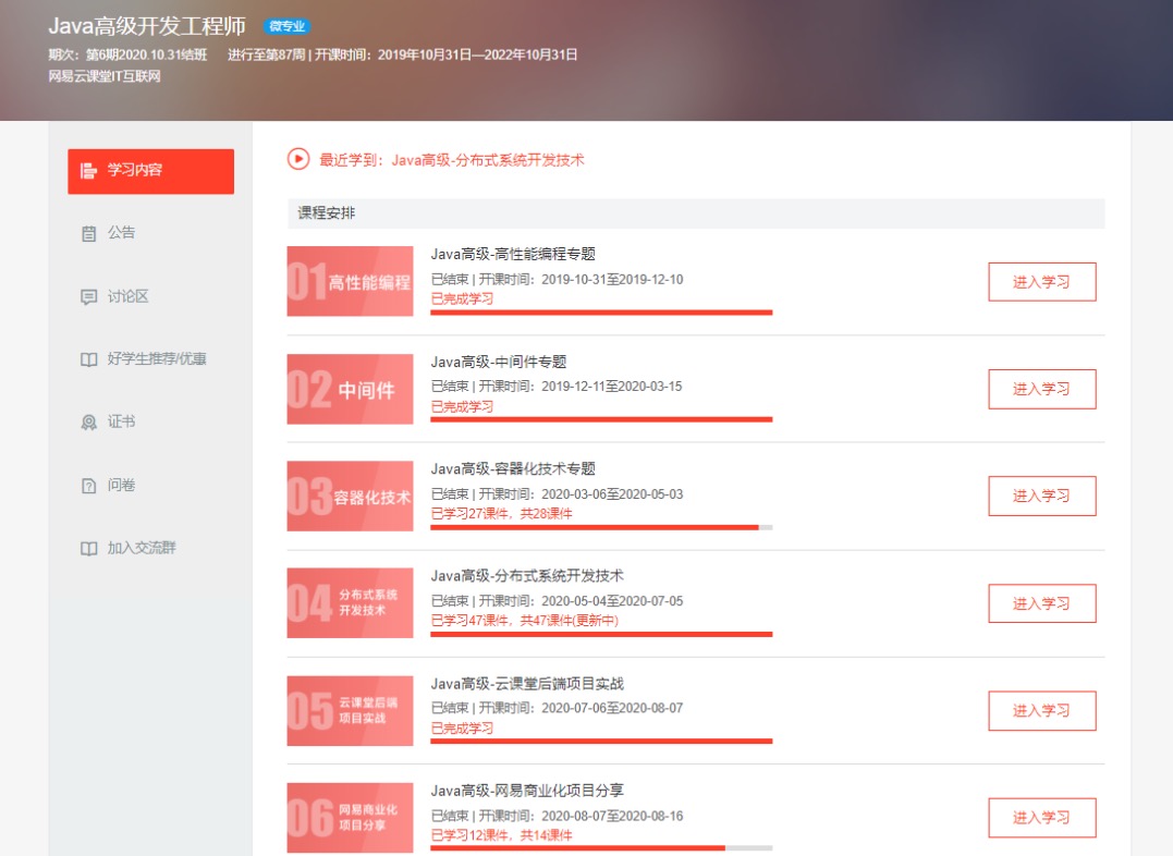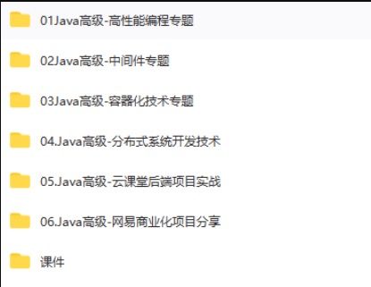 《Java高级开发工程师》课程包含六大专题,分别是高性能编程、中间件、容器化技术、分布式系统开发、网易云课堂后端项目实战及网易商业化项目分享,包含了JVM、RPC、docker等热门知识点的深度讲解。