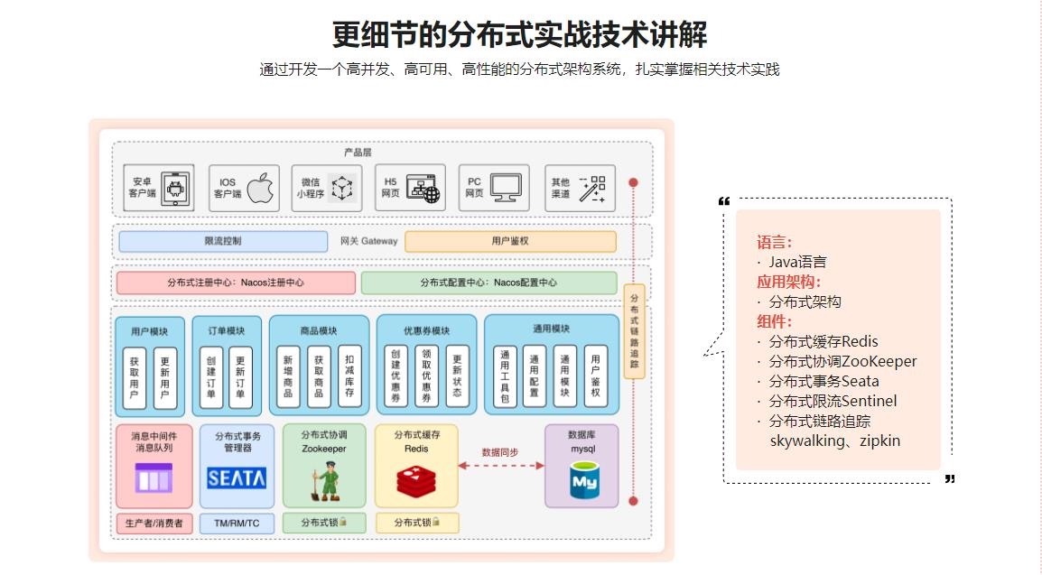 分布式架构是大型项目必用的架构方式,也是云原生、Serverless等新兴技术的底层基石。后端进阶,必然绕不开分布式。但市面的分布式课程鱼龙混杂,造成了不少学习精力的浪费。本课程由慕课网特邀大厂讲师制作,将目前的分布式技术知识进行整合,分为6大知识模块讲解学习,并深度结合案例,将每个细节讲深、讲透,帮助你打通进阶路上的关键脉络,后续学习也更快速。
