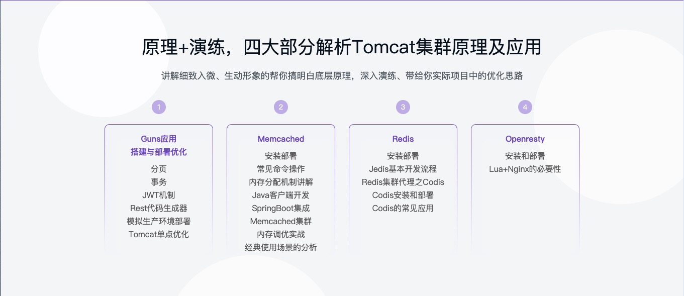 WiseThinker评价: 之前看过Alen老师的免费guns课程,就被他的课程所吸引,Alen老师授课的特点是逻辑分明,条理清晰,由浅入深,而且还会列出思维导图,层次结构更加分明,让没接触过该知识点的学生,也能很轻松跟着老师的节奏上手实践。这也是我第一次在慕课上购买实战课程,然而Alen老师果然没让我失望,视频的每节内容都是干货满满的,在工作之余给自己充充电,挺有收获的。Tomcat的进阶知识很棒,里面讲了很多的Tomcat优化,底层还有集群的知识,平常都没接触过的知识,在这里都能学到,还有最期待的Redis集群。真的是挺赞的。还有Memcached这次也能学到。推荐大家购买Alen老师系列的视频,保证物超所值。