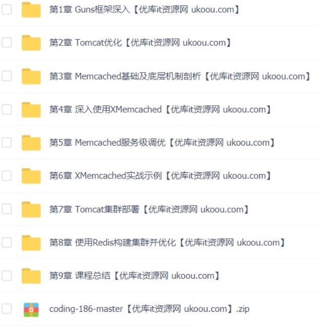 本套课程来自某课网官网售价299元,优库it资源网整理发布无密完结版,是一门学习Tomcat+Memcached/Redis集群的视频教程,本视频教程带你先从Tomcat单点优化入手,然后带你领略Tomcat+Memcached/Redis集群的高可用解决方案,手把手带你搭建Tomcat集群,帮助你向架构师迈进坚实的一步!本视频教程资源目录在底部。