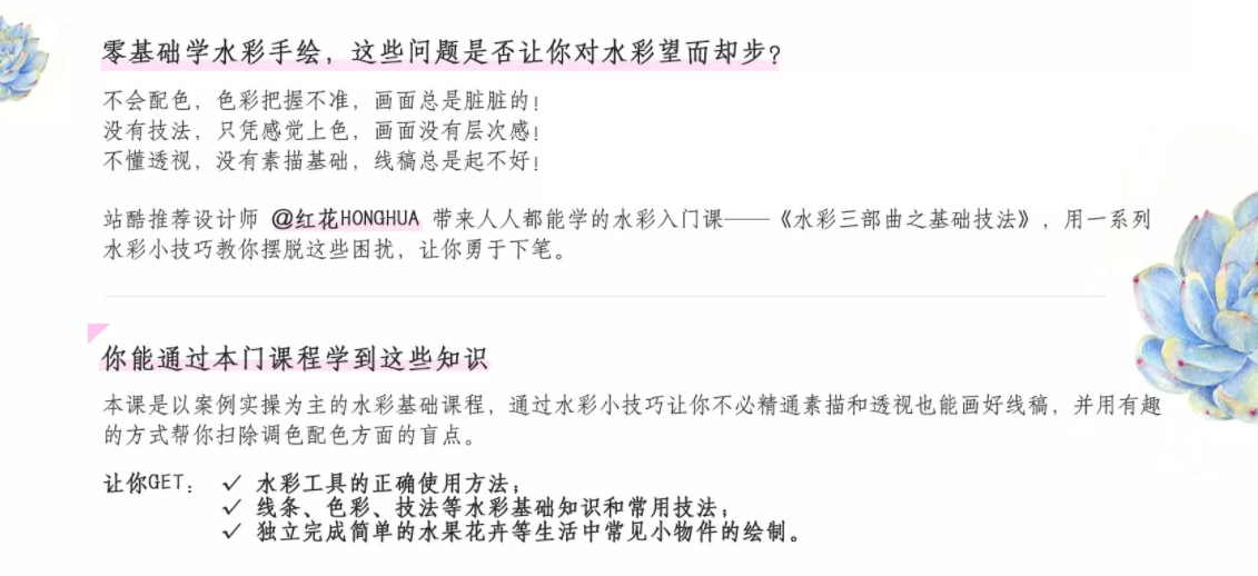 资源介绍 更新记录 有疑问?请点击复制链接咨询! 通过水彩小技巧让你不必精通素描和透视也能画好线稿,并用有趣的方式帮你扫除调色配色方面的盲点。 星课it » 水彩三部曲之基础技法 | 完结 常见问题FAQ 视频课程的格式是什么? 视频不加密,网盘在线学习,课程免费更新,持续更新 购买后怎么如何下载资源? 点击下载按钮,会跳转到百度网盘链接或者阿里云盘链接【链接如失效点击网站右侧联系客服】 有些资源没更新完结怎么办? 本站资源包更新至完结,后续可以点击链接获取 有问题不懂想咨询怎么办? 点击右侧微信客服发起咨询。 2024-03-05Hi,初次和大家见面了,请多关照!