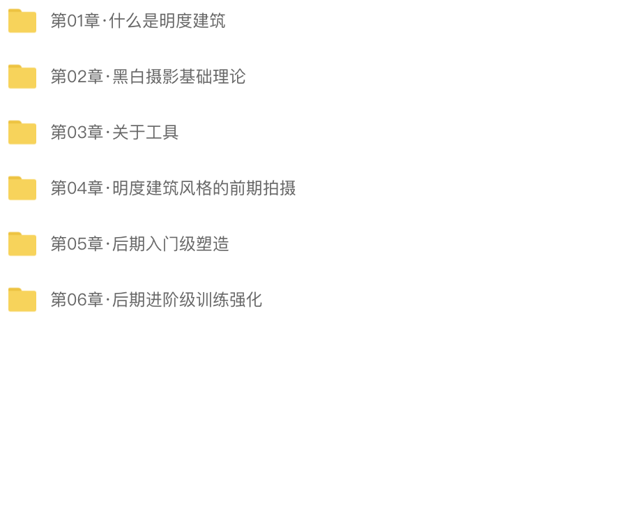 资源介绍 更新记录 有疑问?请点击复制链接咨询! 通过4个步骤的实例操作与讲解,带你领略明度建筑风格摄影作品的魅力 星课it » 黑白摄影·明度建筑风格 | 完结 常见问题FAQ 视频课程的格式是什么? 视频不加密,网盘在线学习,课程免费更新,持续更新 购买后怎么如何下载资源? 点击下载按钮,会跳转到百度网盘链接或者阿里云盘链接【链接如失效点击网站右侧联系客服】 有些资源没更新完结怎么办? 本站资源包更新至完结,后续可以点击链接获取 有问题不懂想咨询怎么办? 点击右侧微信客服发起咨询。 2024-03-05Hi,初次和大家见面了,请多关照!