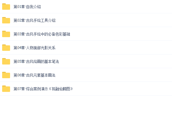 资源介绍 更新记录 有疑问?请点击复制链接咨询! 本课首先讲解了古风手绘的工具使用,并从古代名家画作中总结出经典配色、造型、纹样和氛围表现的经验 星课it » 幻想类古风手绘 | 完结 常见问题FAQ 视频课程的格式是什么? 视频不加密,网盘在线学习,课程免费更新,持续更新 购买后怎么如何下载资源? 点击下载按钮,会跳转到百度网盘链接或者阿里云盘链接【链接如失效点击网站右侧联系客服】 有些资源没更新完结怎么办? 本站资源包更新至完结,后续可以点击链接获取 有问题不懂想咨询怎么办? 点击右侧微信客服发起咨询。 2024-03-05Hi,初次和大家见面了,请多关照!
