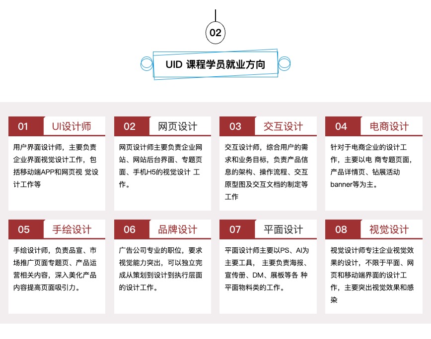 达内致力于面向IT互联网行业,培养软件开发工程师、测试工程师、系统管理员、智能硬件工程师、UI设计师、网络营销工程师、会计等职场人才。达内UID课程助你拥有“设计能力,前端能力,交互逻辑及产品思维”。