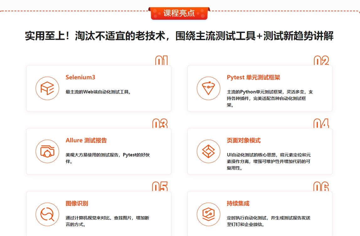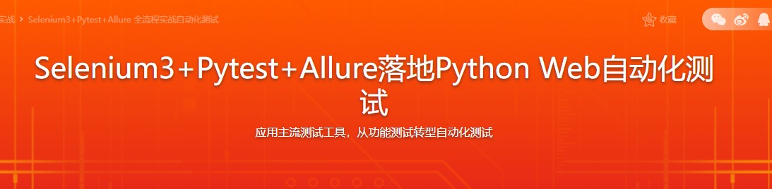不会自动化的测试是没有未来的!本课程以时下主流的测试框架Selenium3+Pytest+Allure,手把手带你实践自动化测试全流程工作,体验自动化测试的畅快,大大提升个人效率。