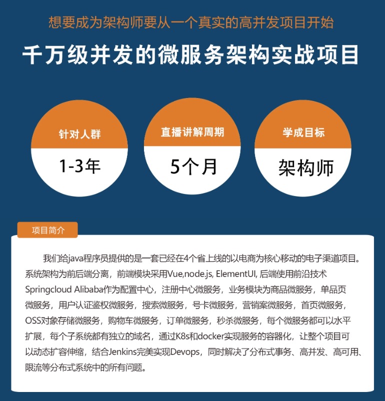 我们给java程序员提供的是一套已经在4个省上线的以电商为核心移动的电子渠道项目。系统架构为前后端分离,前端模块采用Vue,node.js,ElementUI,后端使用前沿技术